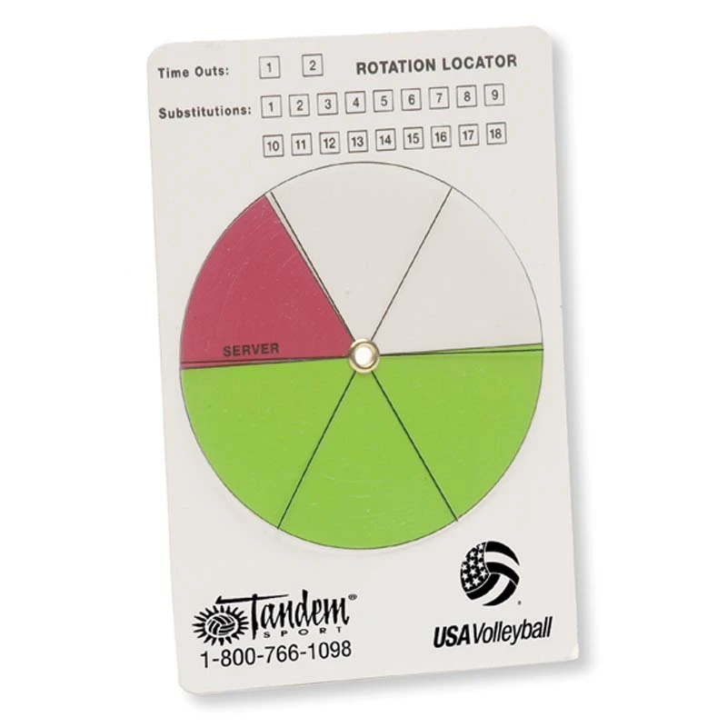 - The outer dial rotates to indicate the changing positions of the players on the volleyball court